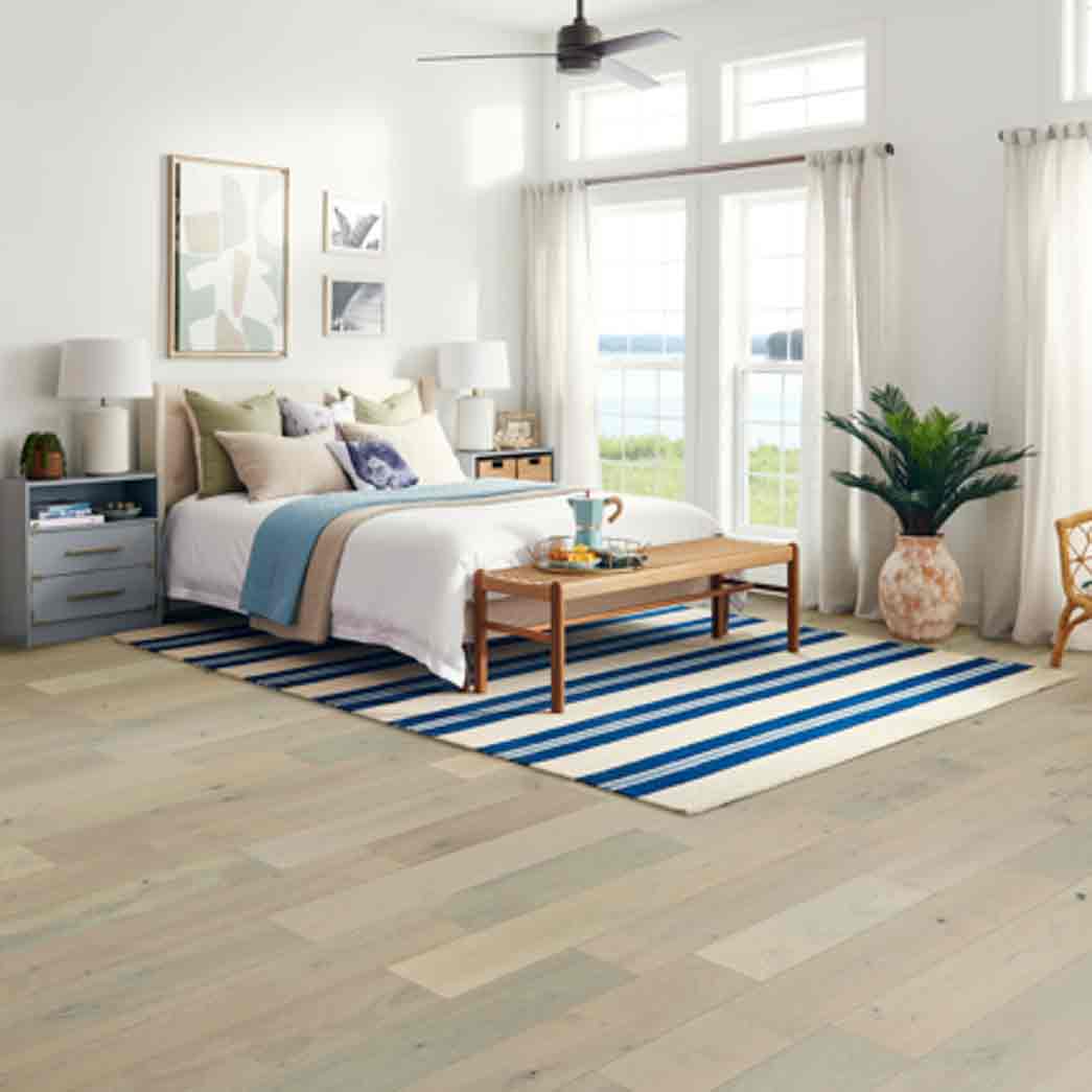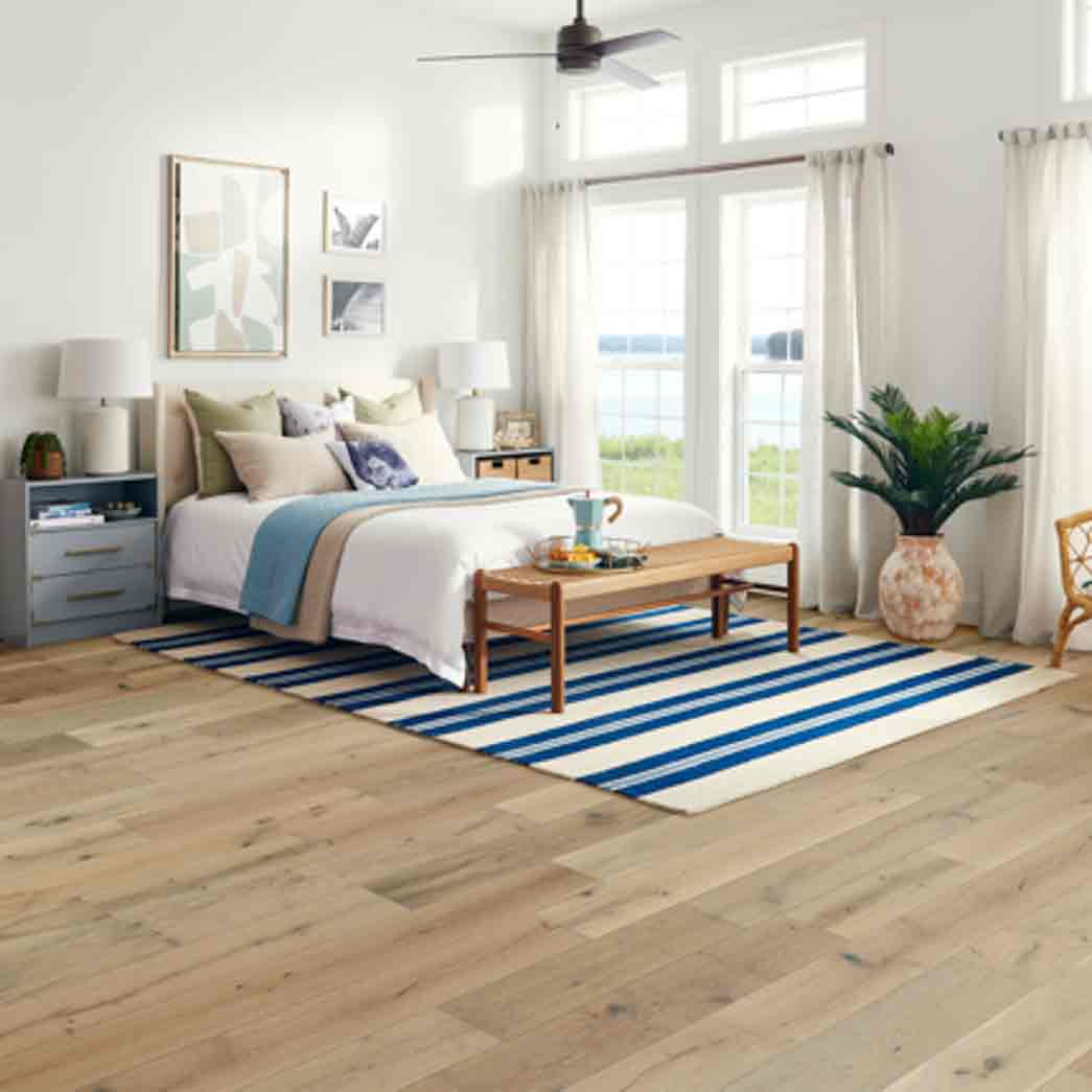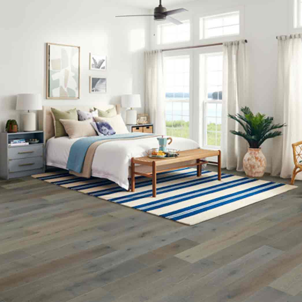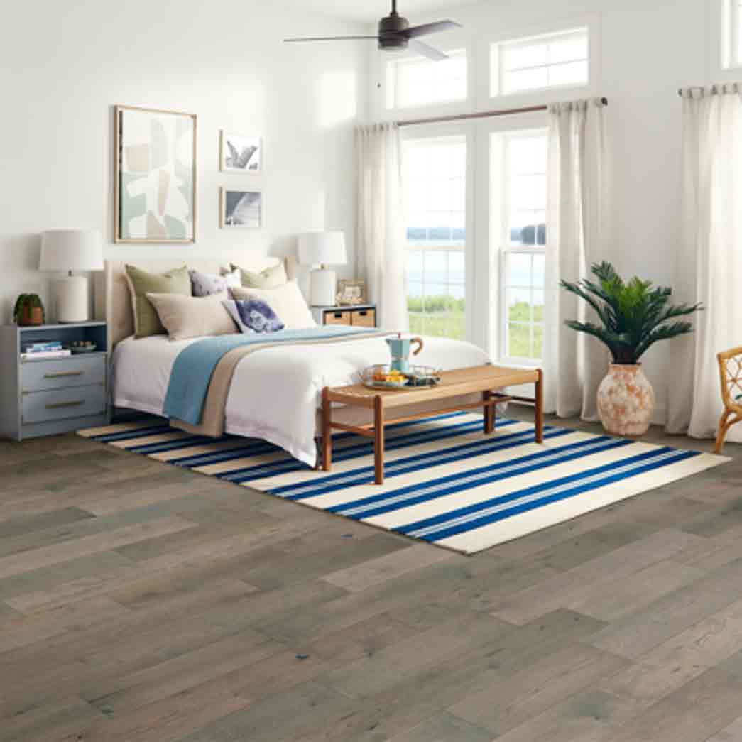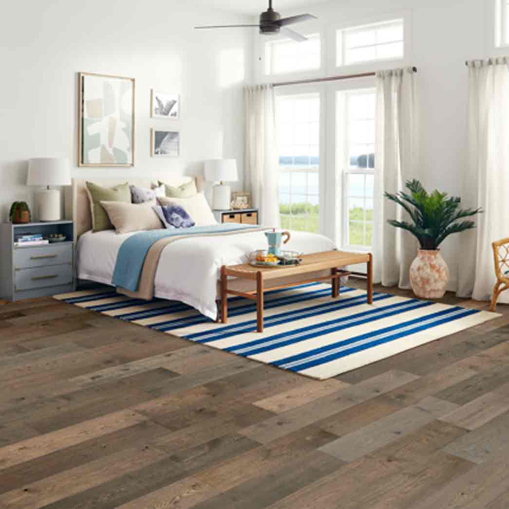 Bruce’s Brushed Impressions gold line of engineered hardwood floor offers the perfect balance of durability and cost while maintaining an exquisite rustic look. The floor carries an impressive dura-luster finish that helps prevent scratches while maintaining the rustic wood flooring look that you are looking for. Wire brushed hardwood flooring increases the look of authenticity while providing durability to high-traffic areas.