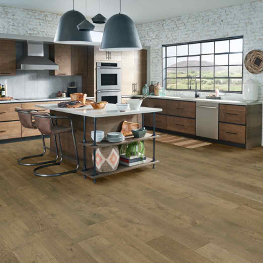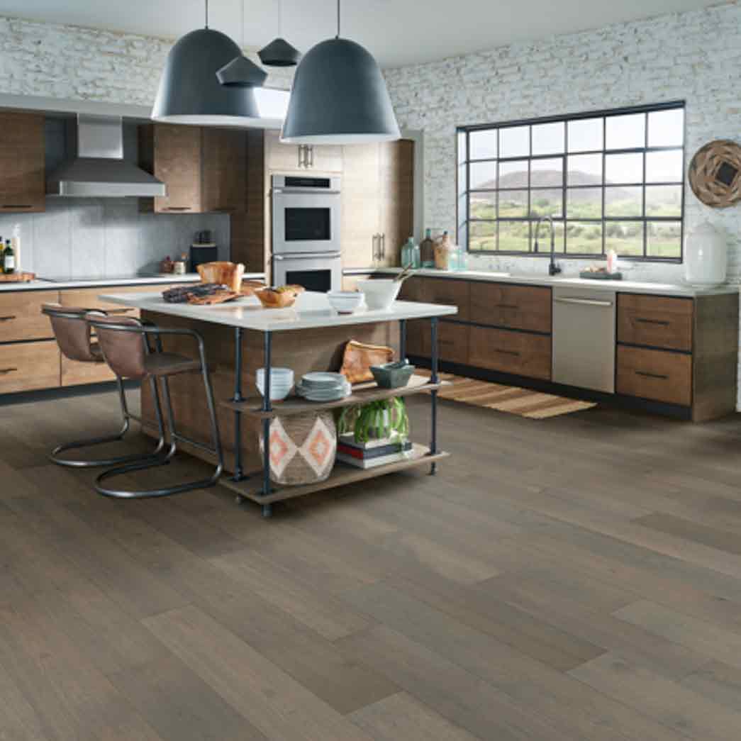 Experience the remarkable beauty of Brushed Impressions Platinum White Oak floors with wide 9" planks. Featuring a rustic wire brushed finish, these engineered wood floors combine durability with a pristine design. The timeless appeal of reclaimed hardwood is captured through an antique charm and worn character seen in Brushed Impressions Platinum Oak.