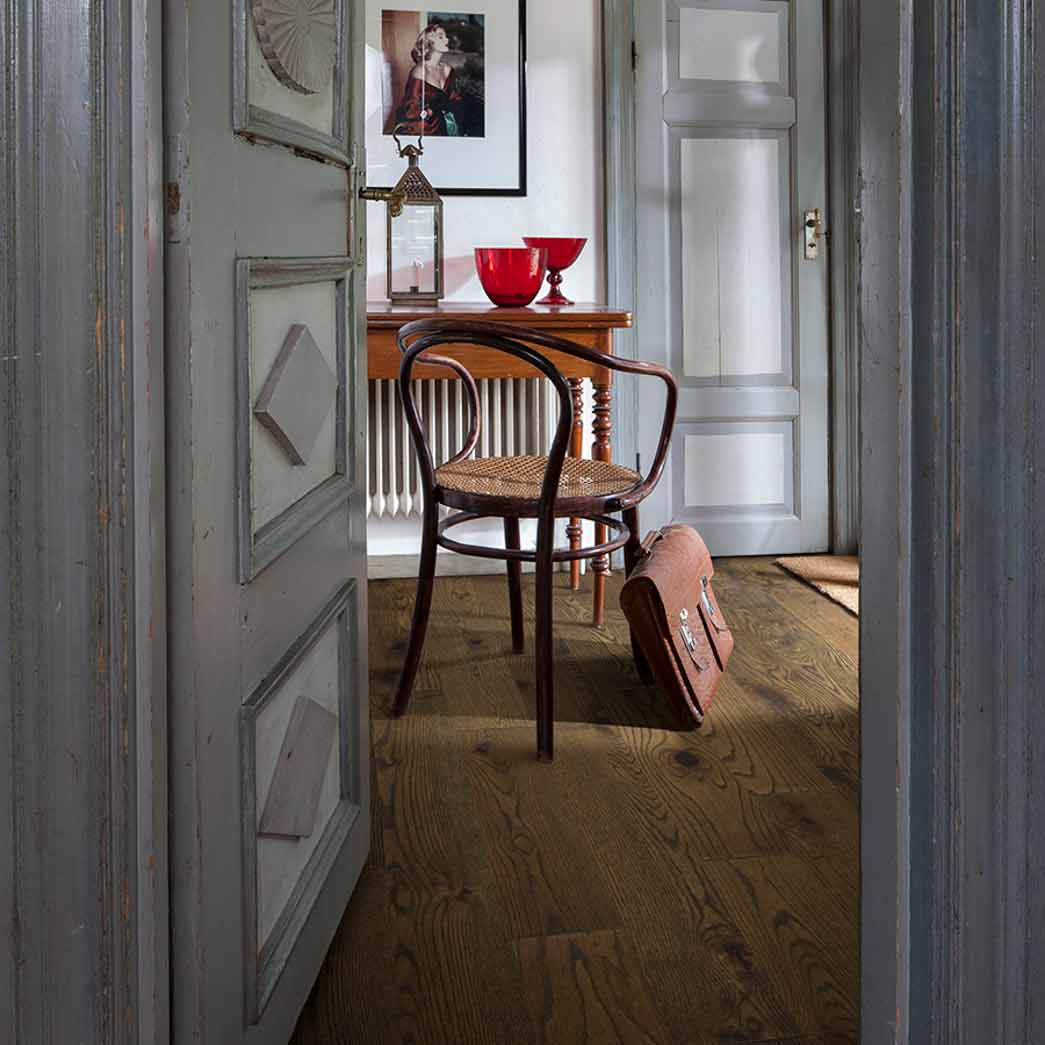 The Crestline Red Oak Solid Collection boasts a traditional hardwood appearance including wire brushing, handcrafted edges, and a sculpted profile for a unique 5" surface. This range is graced with warm, historical-European inspired colors and timeless tones, while hickories offer sumptuous grain patterns and oaks showcase classic tight grain patterns with slight variations in colors from plank to plank. Furthermore, this collection features Hallmark's Nu Oil® protective low sheen finis, bringing out the grain's clarity.