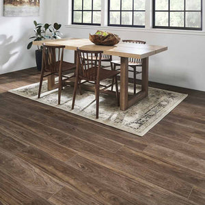 Mannington's Adura Rigid series offers the beautiful and clean visual of white walnut with its Manor collection. This collection brings together the beauty of medium to dark wood tones and soft texturing that make it stand out in any room. This waterproof flooring option is presented in 7.25" x 48" vinyl planks, making it a perfect choice for a traditional or modern look.