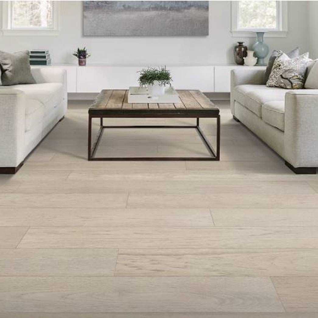 Mohawk's Beachside Villa is an engineered prefinished hardwood flooring option that offers a striking and modern aesthetic to any floor plan. This series offers bold tones of Hickory with a stately woodgrain. This hickory hardwood flooring is perfect for any room searching for distinction.