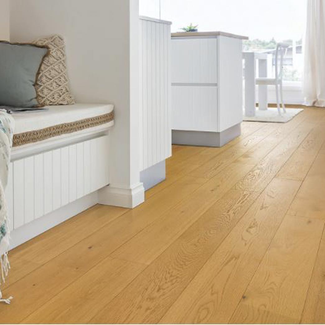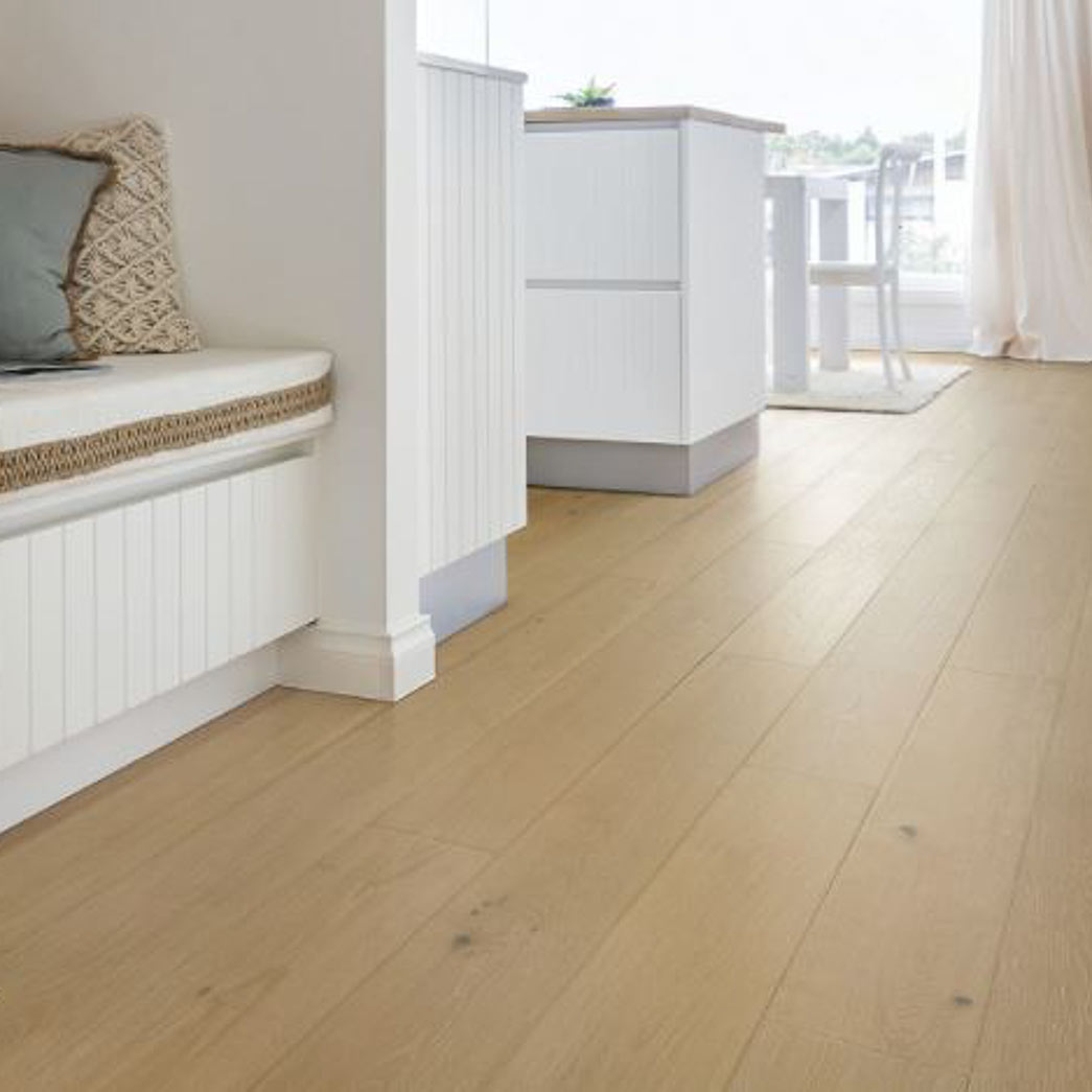 Harbor Estates is an engineered Mohawk hardwood floor that provides a warm and vintage look and feel to any room. This series offers warm shades of Oak with a light wood grain texture, perfect for any floor plan.