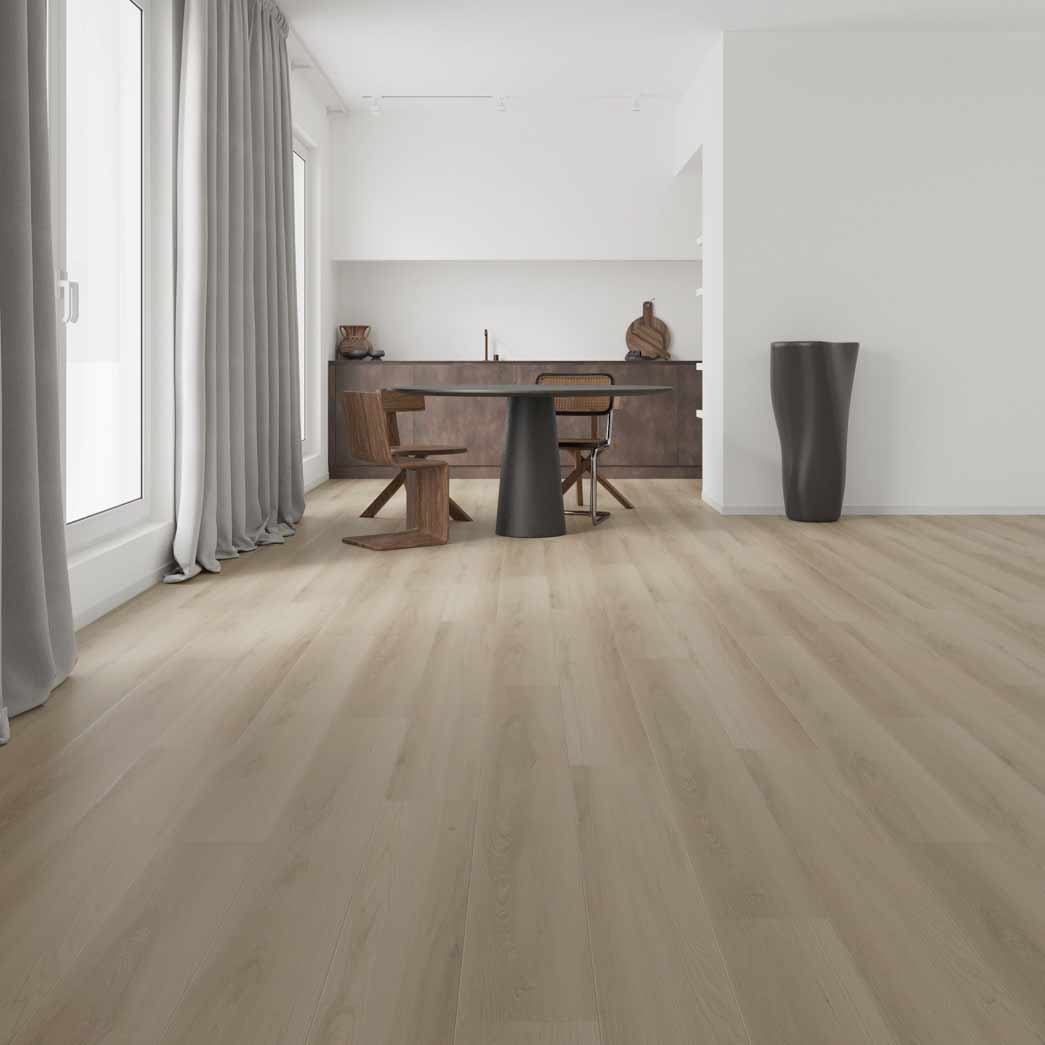 Take your living space to the next level with the R.A Siegel Waterfront laminate collection. Furnished with Unilin's 2G locking system, this collection offers effortless installation. It also features a 2mm IXPE pad attached for noise reduction, and a premium AC4 wear layer for unmatched durability. With its 100% waterproof design, AC4 wear layer, and 12mm thickness, this laminate is built to last. Available in eight stunning colors, the Waterfront collection complements any interior design. This laminate is perfect for busy households and families with children or pets.