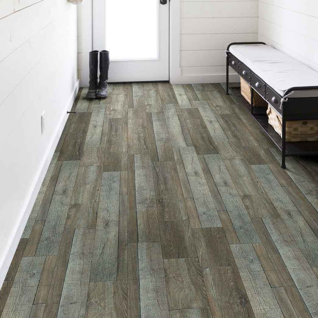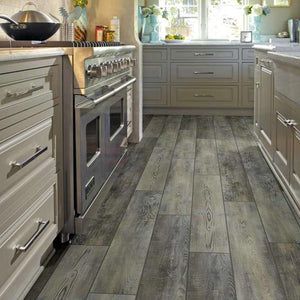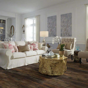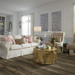 Shaw's Antica HD Plus is a visually stunning waterproof flooring that comes with a pad attached to every plank to help damper sound and adds a little cushion to your step. This luxury vinyl plank flooring has a gorgeous wood textured surface that no one will know that it isn't real hardwood flooring.