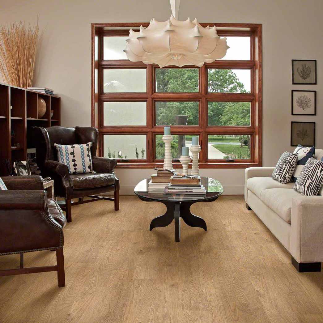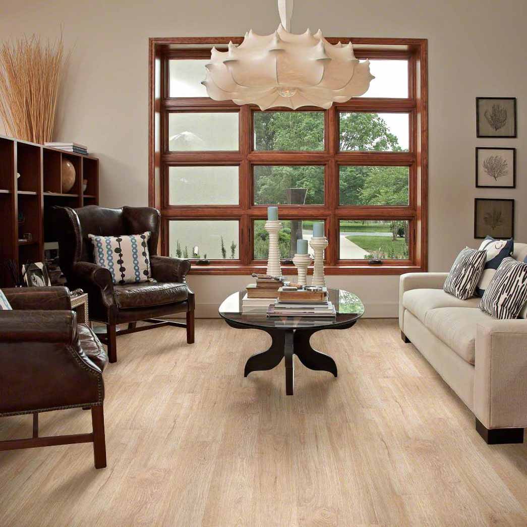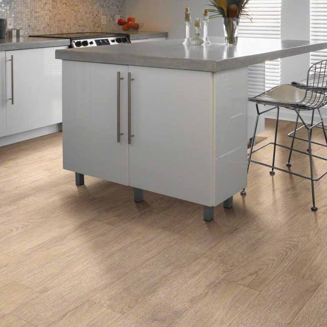 The light colors in Shaw's Thoroughly MO 6 is sure to brighten up even the demist of rooms and add a feeling of warmth. The beauty in the design of this waterproof flooring brings out the wood grain patterns for a true hardwood look.