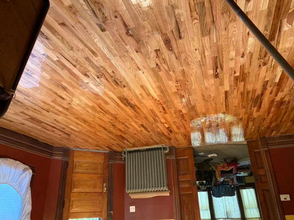 It has a warm rustic cabin ambiance in oak consisting of small, large and pocket knots with veins running through it. Matching wood filler should be used to fill these knots (recommended filler Bona Pacific Filler). Expect the flooring boards to be random length ranging from less than 1 foot to 3 feet. Consider that there will be flaws in the flooring boards and that extra labor may be necessary. Flaws on your flooring may be amended simply by filling pocket knots with wood filler and squaring off insignificant cracks on the butt joint, short splits or broken tongue and grooves.  Some boards may have an "x" marked on them.  When boards are run through the mill, they are marked with an "x" to indicate that boards are a grade #3, common grade, or value grade.  These boards do not qualify for Select down to #2 and that is why they are sold at lower prices. The “x” will be sanded off when finishing the floor. Please check out how beautiful this flooring can be when it’s finished in the pictures above.
