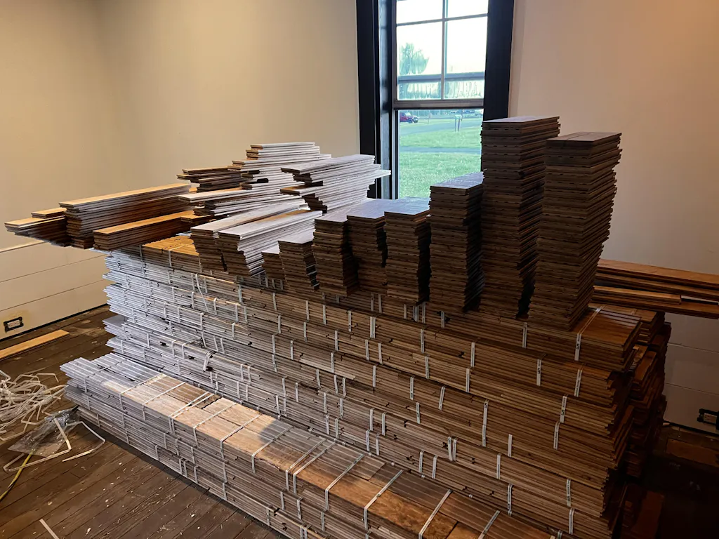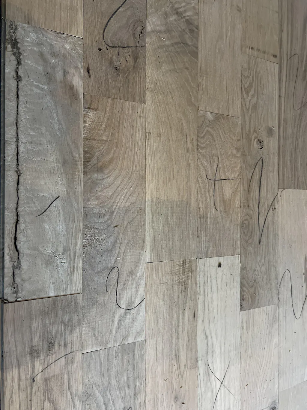 These beauties were hand scraped by yours truly, 2" carbide scraper twice plus scraping out mastic from the TnG after running a Mastic swing arm drive over it for a few hours.